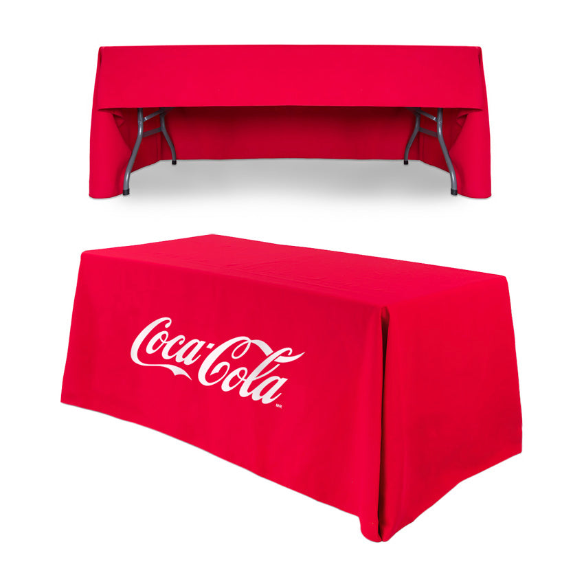 Our custom table coverings are the perfect finishing touch for any event or display. With the option for full colour dye sublimation printing, your design can be brought to life in vibrant, eye-catching detail. The durable, wrinkle-resistant fabric is hemmed on all sides for a polished look, and comes in a range of sizes to fit any table.
